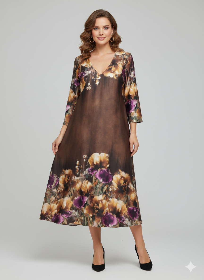 Abito Midi "Iris Garden" - Eleganza Satinata Un trionfo di femminilità e stile senza tempo. Scopri l'equilibrio perfetto tra comfort e alta moda con l'abito midi "Iris Garden". Questo capo è stato pensato per la donna che desidera un look sofisticato ma naturale, ideale per cerimonie primaver...